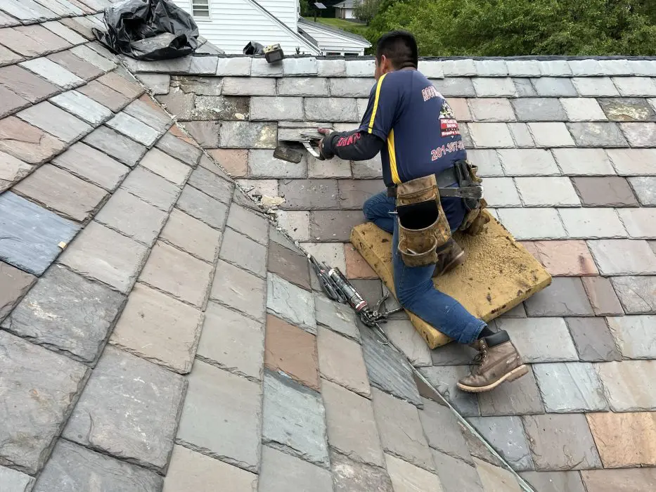 At Three Brothers Roofing, we specialize in slate roof leak repair in West New York, NJ, providing reliable solutions backed by over 25 years of experience. Our certified technicians are highly trained to identify and fix all types of slate roof issues with just one thorough inspection. We offer a 2-year labor guarantee on all slate roof leak repair projects, along with expert flat roof leak repairs. As a trusted local company, we combine quality workmanship with affordable service to ensure your home is protected. Whether it’s a roof leak or chimney leak repair, you can count on our team 24/7 for professional, fast, and dependable service. Call your local slate roof leak repair specialists today at (201) 367-8963 for a free estimate.